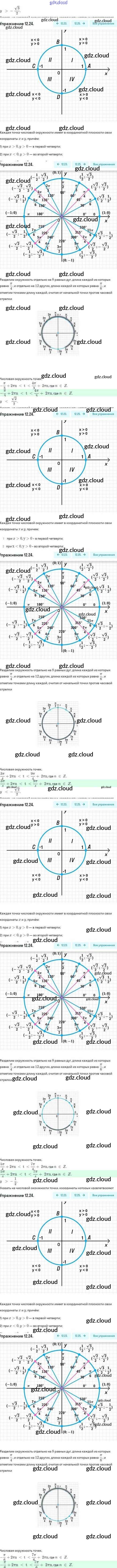 Ответы. §12. Числовая окружность на координатной плоскости по Алгебре 10 класс Задачник Мордкович Базовый и углубленный уровень Мнемозина