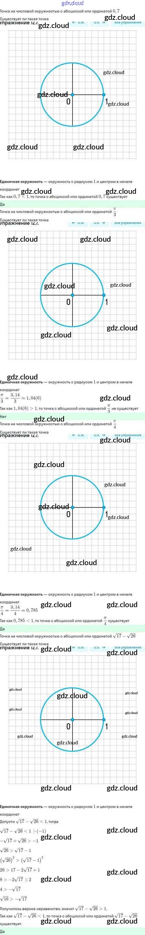 Ответы. §12. Числовая окружность на координатной плоскости по Алгебре 10 класс Задачник Мордкович Базовый и углубленный уровень Мнемозина