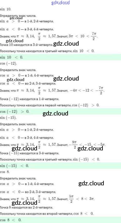 Ответы. §13. Синус и косинус. Тангенс и котангенс по Алгебре 10 класс Задачник Мордкович Базовый и углубленный уровень Мнемозина