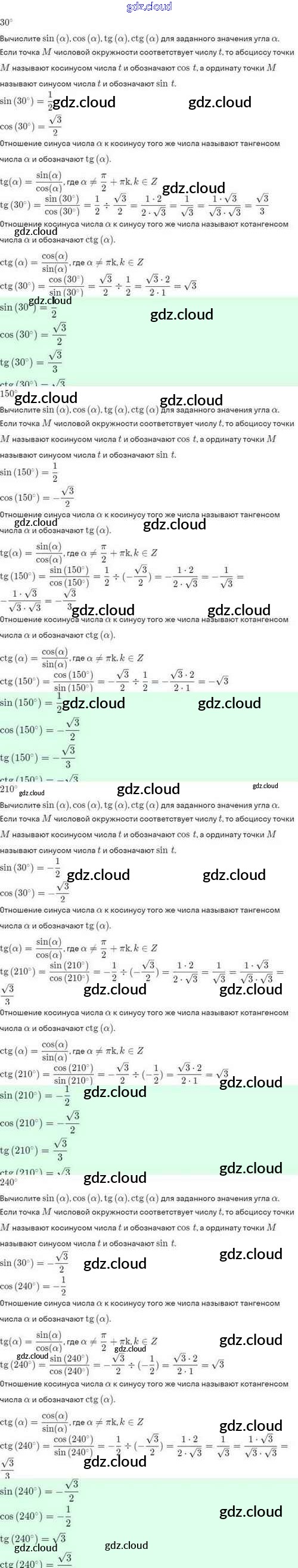 Ответы. §15. Тригонометрические функции углового аргумента по Алгебре 10 класс Задачник Мордкович Базовый и углубленный уровень Мнемозина