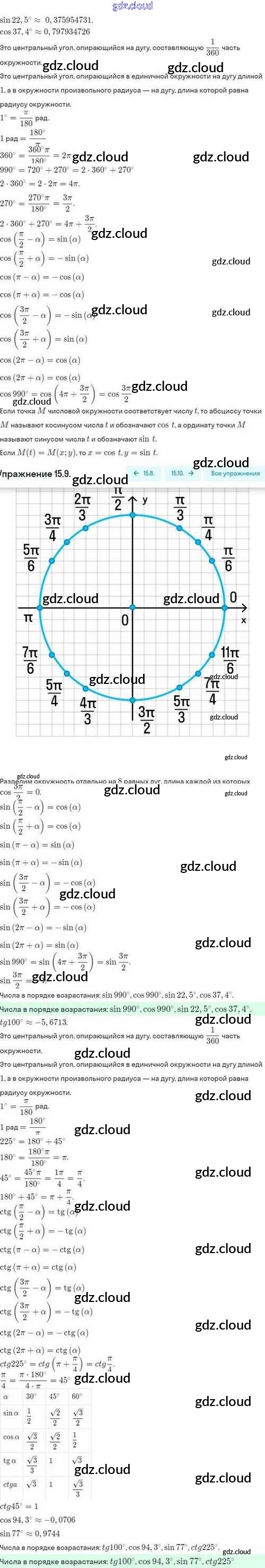 Ответы. §15. Тригонометрические функции углового аргумента по Алгебре 10 класс Задачник Мордкович Базовый и углубленный уровень Мнемозина