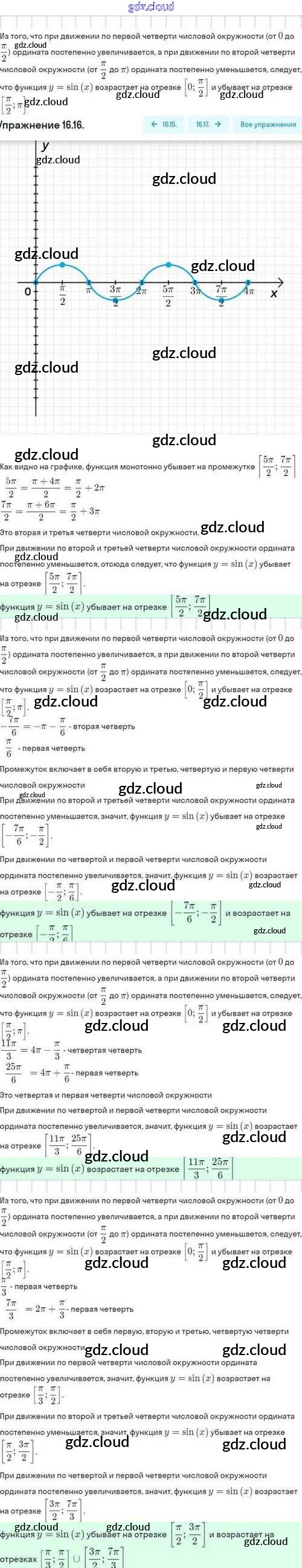 Ответы. §16. Функции y=sinx, y=cosx, их свойства и графики по Алгебре 10 класс Задачник Мордкович Базовый и углубленный уровень Мнемозина