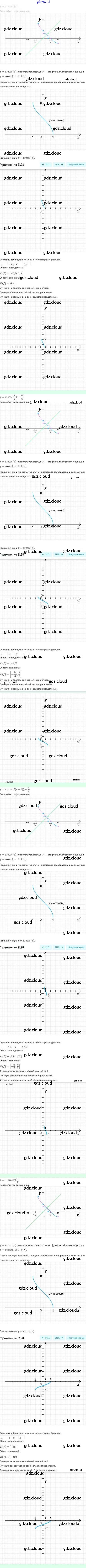 Ответы. §21. Обратные тригонометрические функции по Алгебре 10 класс Задачник Мордкович Базовый и углубленный уровень Мнемозина