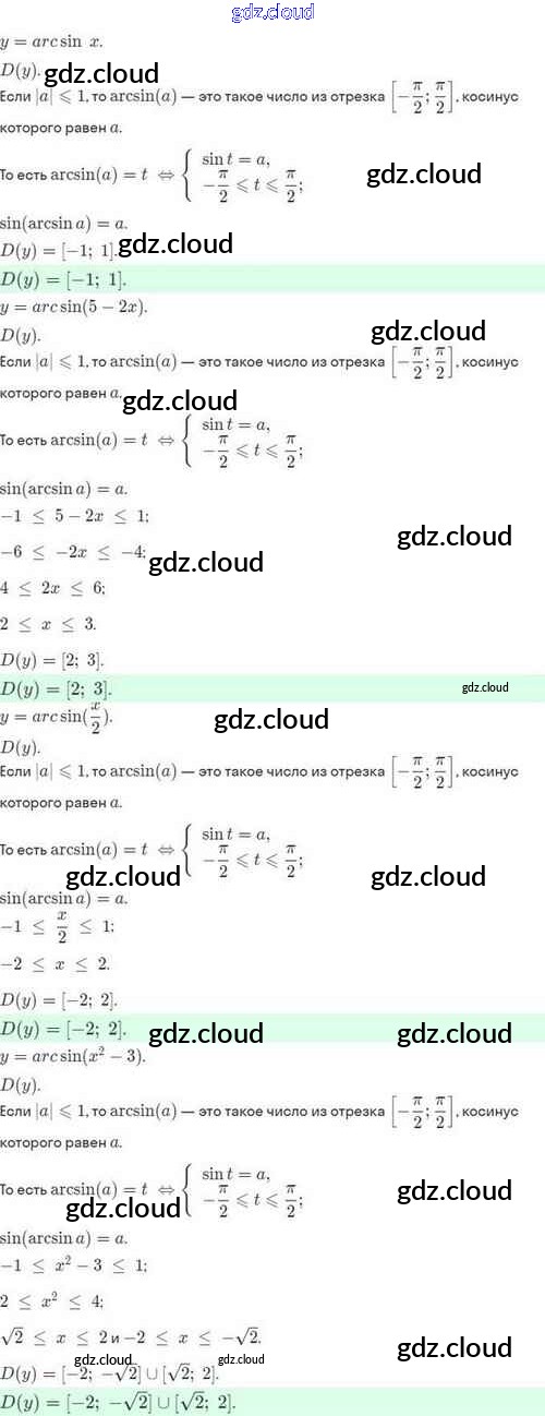Ответы. §21. Обратные тригонометрические функции по Алгебре 10 класс Задачник Мордкович Базовый и углубленный уровень Мнемозина