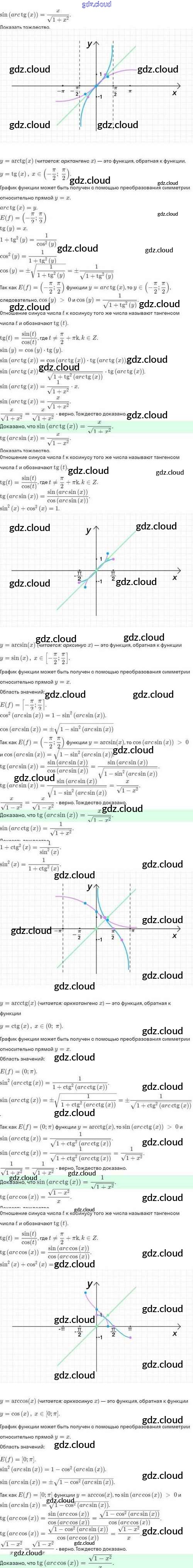 Ответы. §21. Обратные тригонометрические функции по Алгебре 10 класс Задачник Мордкович Базовый и углубленный уровень Мнемозина