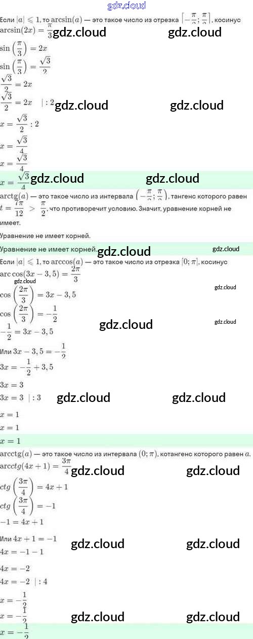 Ответы. §21. Обратные тригонометрические функции по Алгебре 10 класс Задачник Мордкович Базовый и углубленный уровень Мнемозина