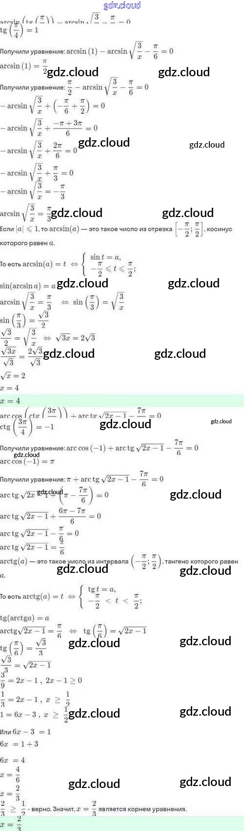 Ответы. §21. Обратные тригонометрические функции по Алгебре 10 класс Задачник Мордкович Базовый и углубленный уровень Мнемозина