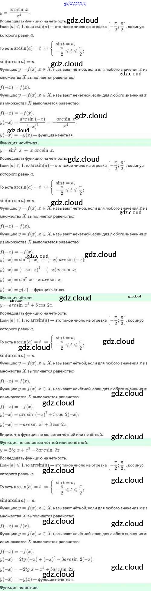 Ответы. §21. Обратные тригонометрические функции по Алгебре 10 класс Задачник Мордкович Базовый и углубленный уровень Мнемозина