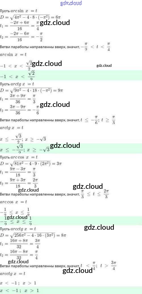 Ответы. §21. Обратные тригонометрические функции по Алгебре 10 класс Задачник Мордкович Базовый и углубленный уровень Мнемозина