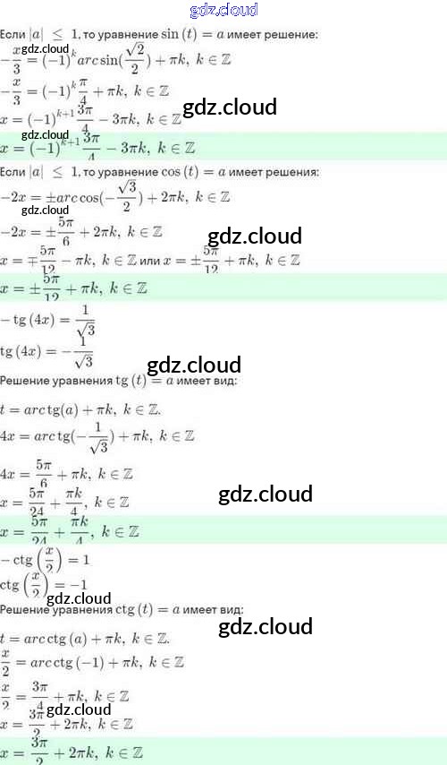 Ответы. §22. Простейшие тригонометрические уравнения и неравенства по Алгебре 10 класс Задачник Мордкович Базовый и углубленный уровень Мнемозина