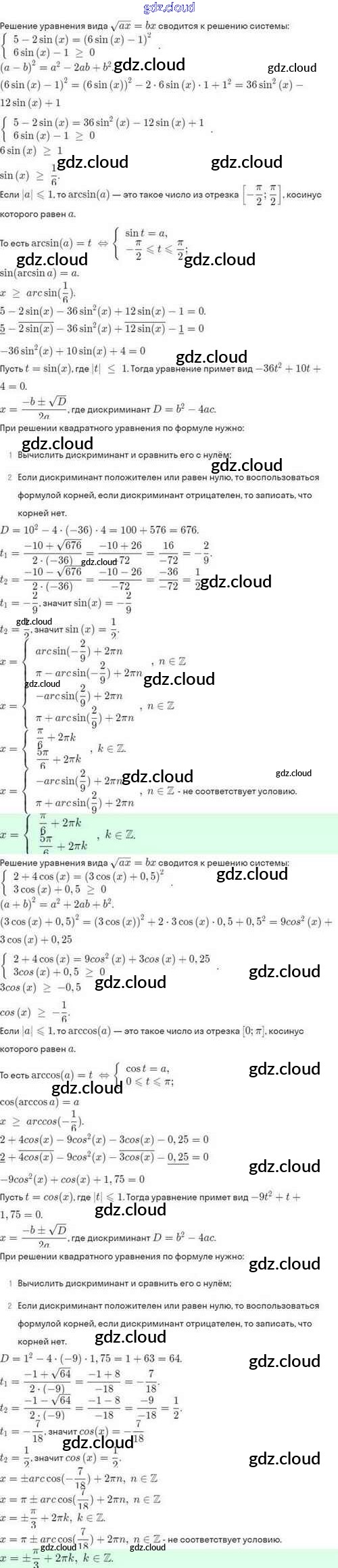 Ответы. §23. Методы решения тригонометрических уравнений по Алгебре 10 класс Задачник Мордкович Базовый и углубленный уровень Мнемозина