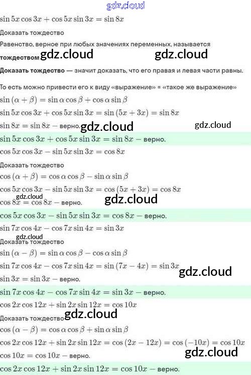 Ответы. §24. Синус и косинус суммы и разности аргументов по Алгебре 10 класс Задачник Мордкович Базовый и углубленный уровень Мнемозина
