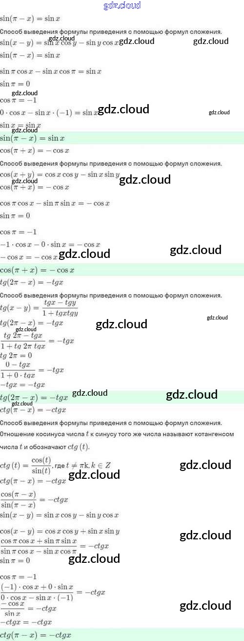 Ответы. §24. Синус и косинус суммы и разности аргументов по Алгебре 10 класс Задачник Мордкович Базовый и углубленный уровень Мнемозина