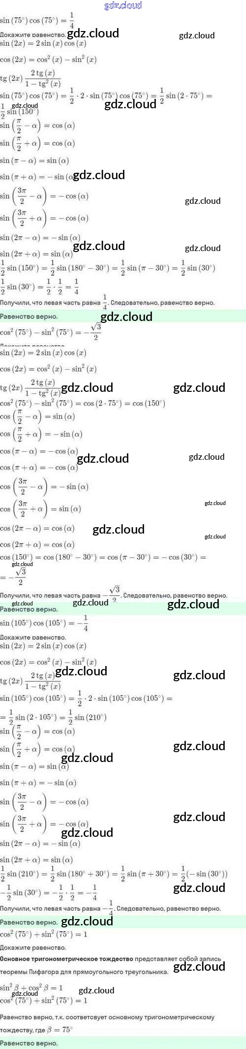 Ответы. §24. Синус и косинус суммы и разности аргументов по Алгебре 10 класс Задачник Мордкович Базовый и углубленный уровень Мнемозина