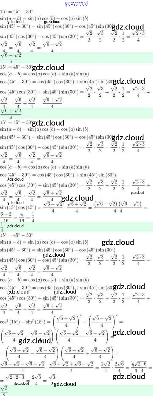 Ответы. §24. Синус и косинус суммы и разности аргументов по Алгебре 10 класс Задачник Мордкович Базовый и углубленный уровень Мнемозина