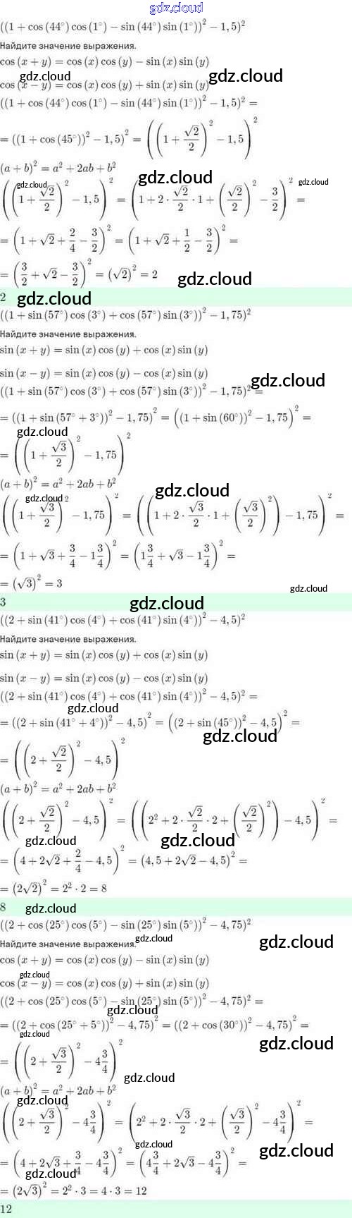Ответы. §24. Синус и косинус суммы и разности аргументов по Алгебре 10 класс Задачник Мордкович Базовый и углубленный уровень Мнемозина