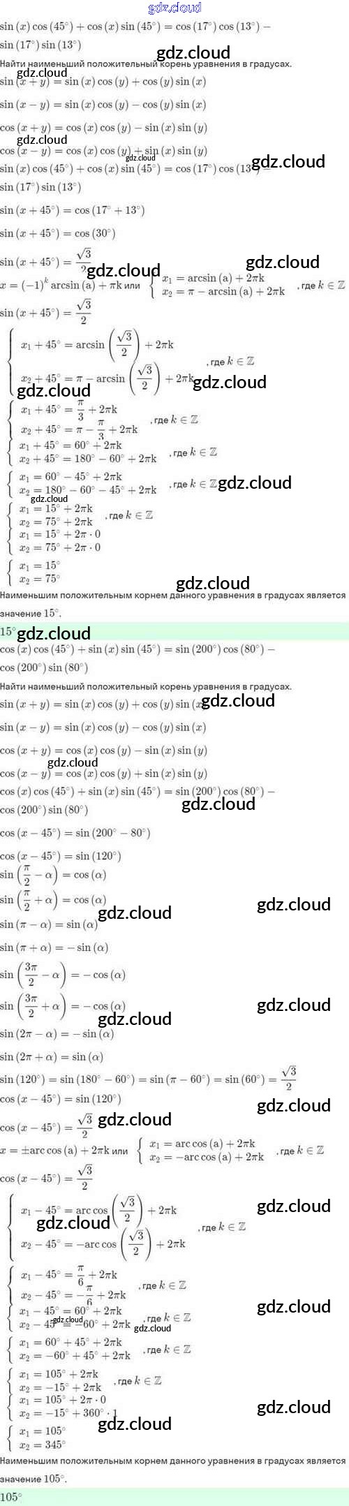 Ответы. §24. Синус и косинус суммы и разности аргументов по Алгебре 10 класс Задачник Мордкович Базовый и углубленный уровень Мнемозина