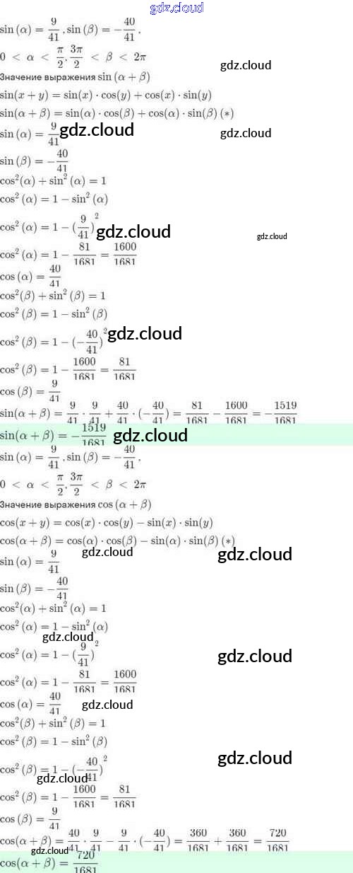 Ответы. §24. Синус и косинус суммы и разности аргументов по Алгебре 10 класс Задачник Мордкович Базовый и углубленный уровень Мнемозина