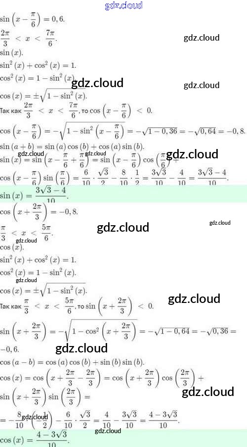 Ответы. §24. Синус и косинус суммы и разности аргументов по Алгебре 10 класс Задачник Мордкович Базовый и углубленный уровень Мнемозина