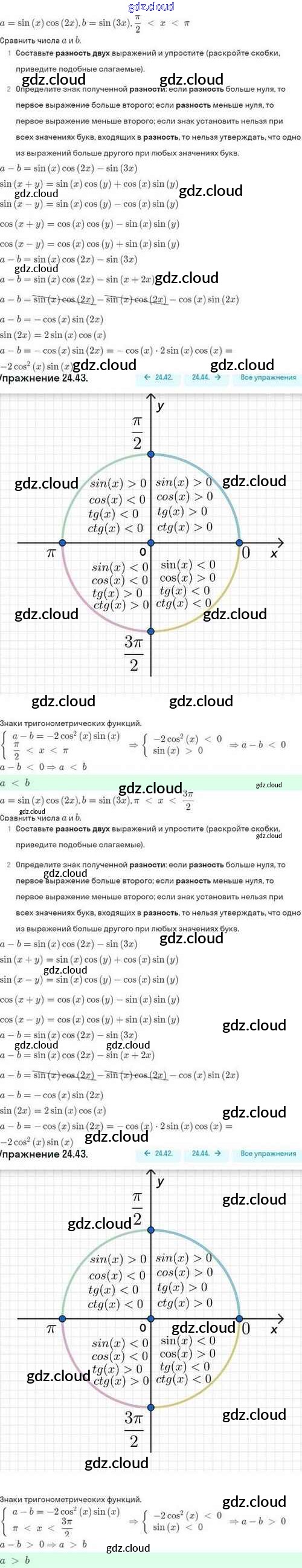 Ответ на задание 24.43 Задачник Алгебра за 10 (десятый) класс Мордкович, Семёнов, Звавич, Корешкова, Мишустина Базовый и углубленный уровень 2017