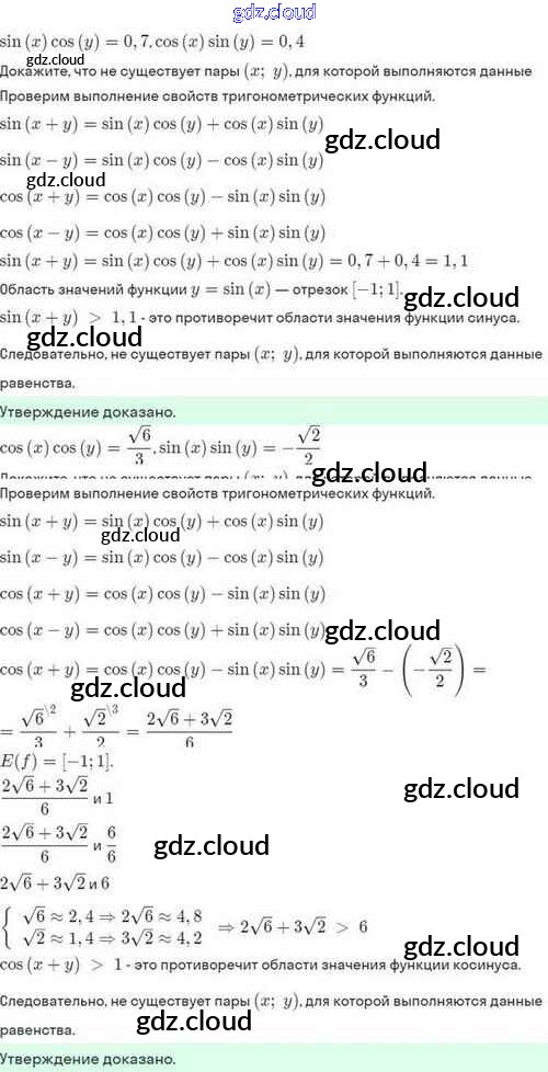 Ответы. §24. Синус и косинус суммы и разности аргументов по Алгебре 10 класс Задачник Мордкович Базовый и углубленный уровень Мнемозина