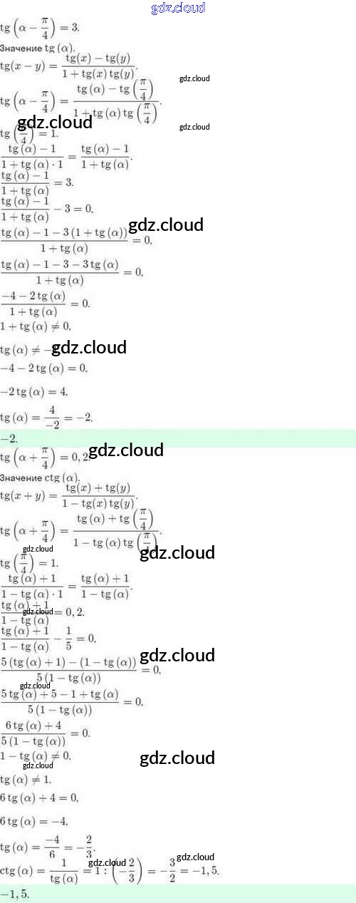 Ответы. §25. Тангенс суммы и разности аргументов по Алгебре 10 класс Задачник Мордкович Базовый и углубленный уровень Мнемозина