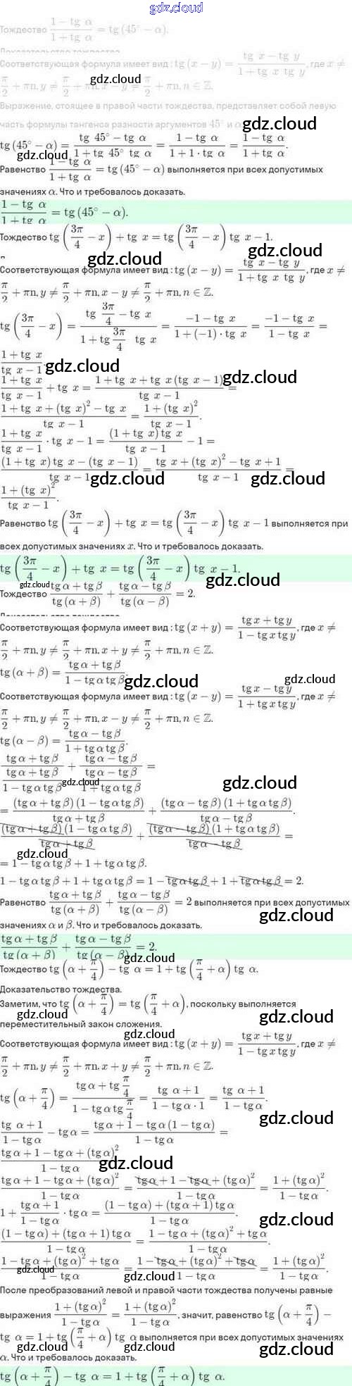 Ответы. §25. Тангенс суммы и разности аргументов по Алгебре 10 класс Задачник Мордкович Базовый и углубленный уровень Мнемозина