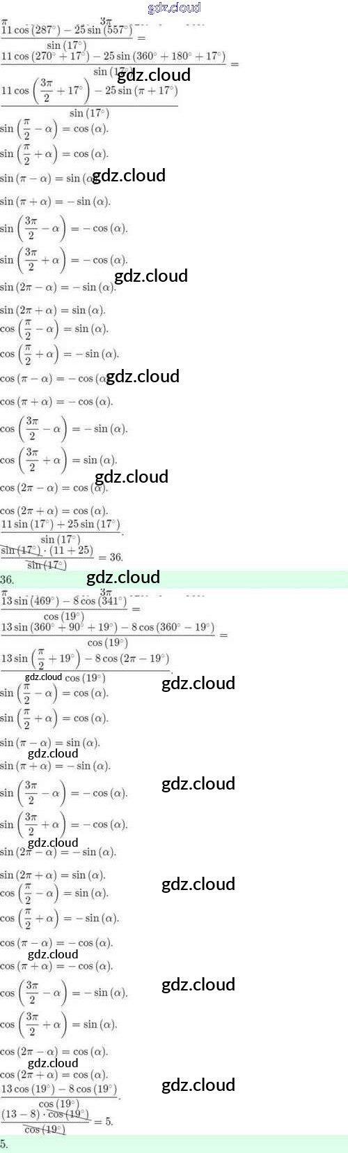 Ответы. §26. Формулы приведения по Алгебре 10 класс Задачник Мордкович Базовый и углубленный уровень Мнемозина