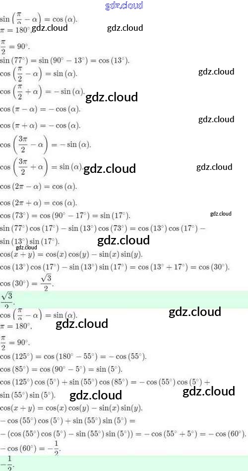 Ответы. §26. Формулы приведения по Алгебре 10 класс Задачник Мордкович Базовый и углубленный уровень Мнемозина
