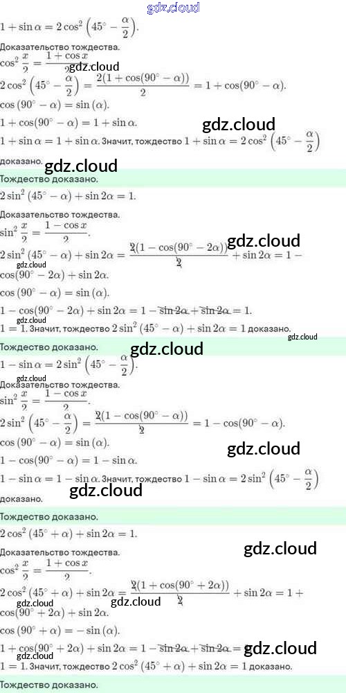 Ответы. §27. Формулы двойного аргумента. Формулы понижения степени по Алгебре 10 класс Задачник Мордкович Базовый и углубленный уровень Мнемозина