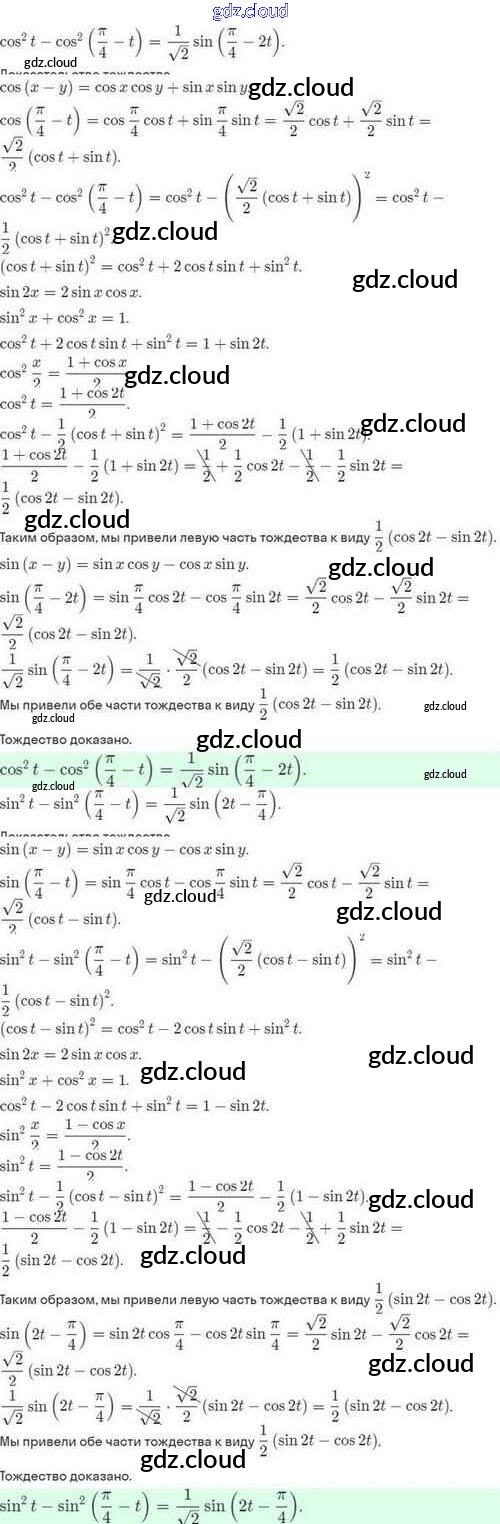 Ответы. §27. Формулы двойного аргумента. Формулы понижения степени по Алгебре 10 класс Задачник Мордкович Базовый и углубленный уровень Мнемозина