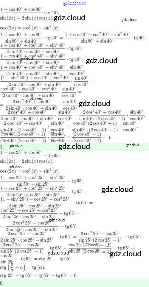 Ответы. §27. Формулы двойного аргумента. Формулы понижения степени по Алгебре 10 класс Задачник Мордкович Базовый и углубленный уровень Мнемозина