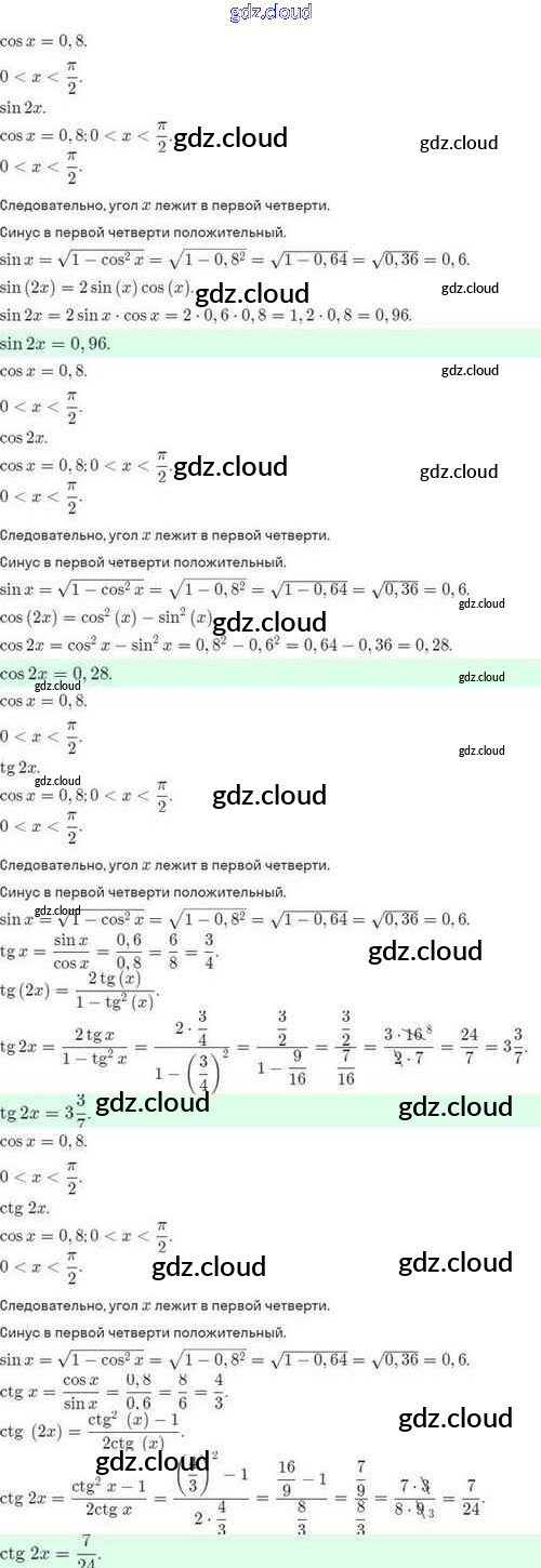 Ответы. §27. Формулы двойного аргумента. Формулы понижения степени по Алгебре 10 класс Задачник Мордкович Базовый и углубленный уровень Мнемозина