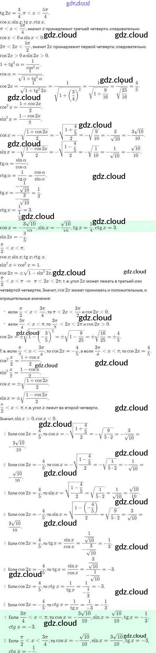 Ответы. §27. Формулы двойного аргумента. Формулы понижения степени по Алгебре 10 класс Задачник Мордкович Базовый и углубленный уровень Мнемозина