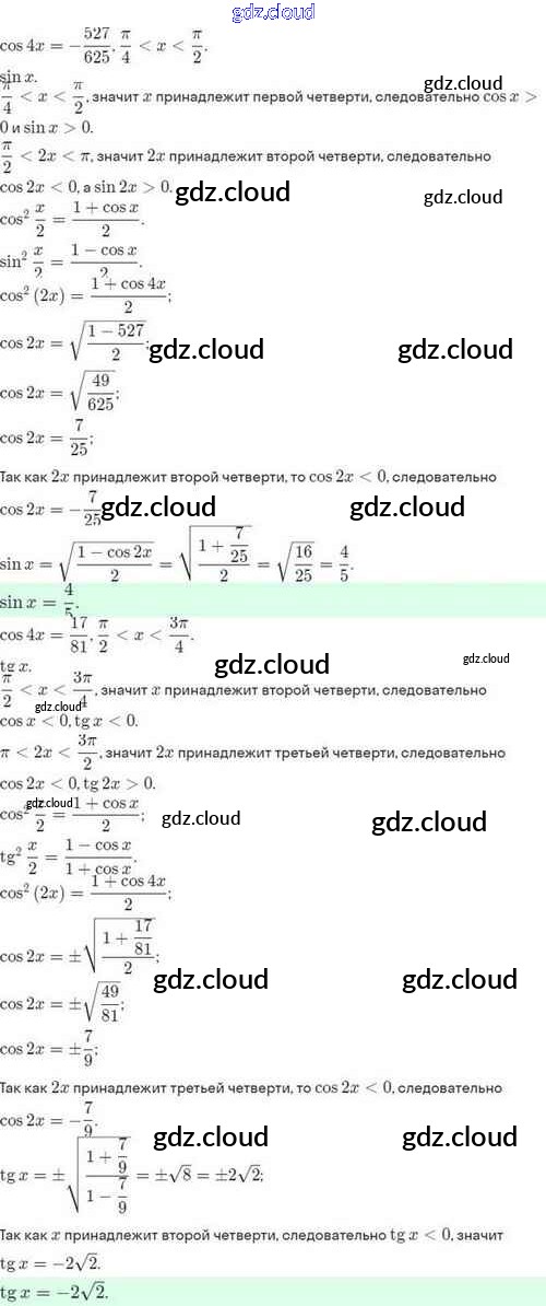 Ответы. §27. Формулы двойного аргумента. Формулы понижения степени по Алгебре 10 класс Задачник Мордкович Базовый и углубленный уровень Мнемозина