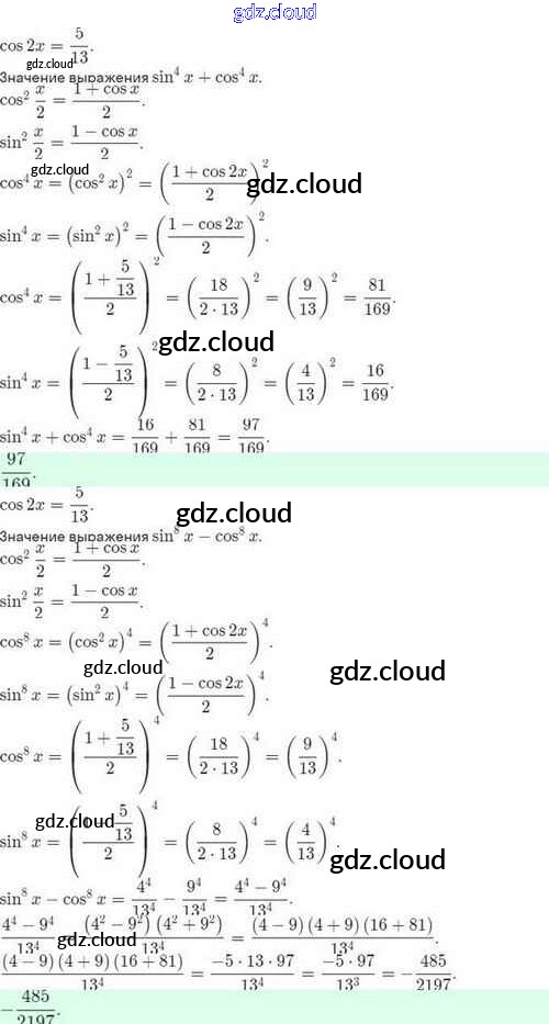 Ответы. §27. Формулы двойного аргумента. Формулы понижения степени по Алгебре 10 класс Задачник Мордкович Базовый и углубленный уровень Мнемозина