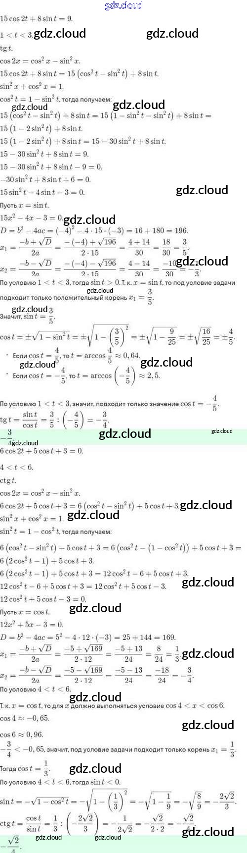 Ответы. §27. Формулы двойного аргумента. Формулы понижения степени по Алгебре 10 класс Задачник Мордкович Базовый и углубленный уровень Мнемозина