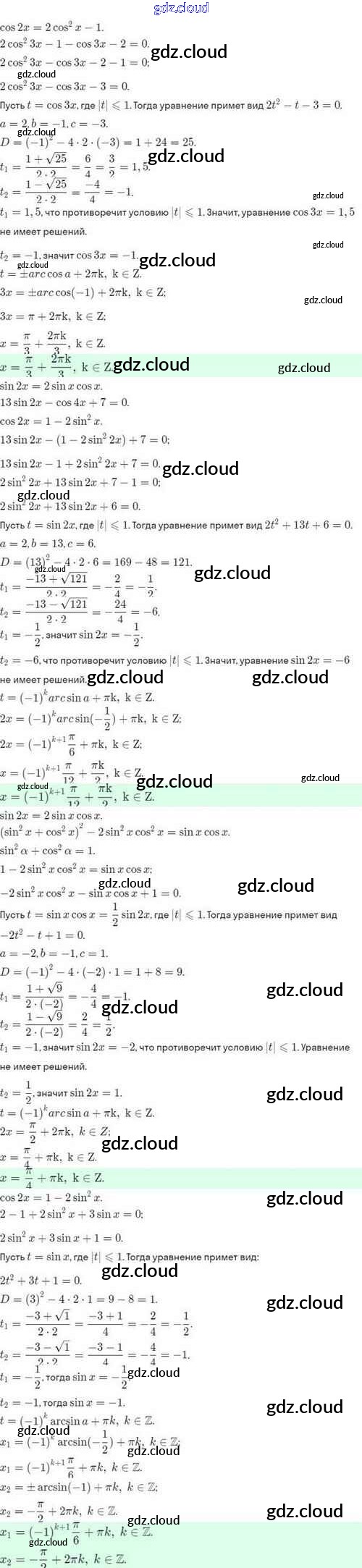 Ответы. §27. Формулы двойного аргумента. Формулы понижения степени по Алгебре 10 класс Задачник Мордкович Базовый и углубленный уровень Мнемозина
