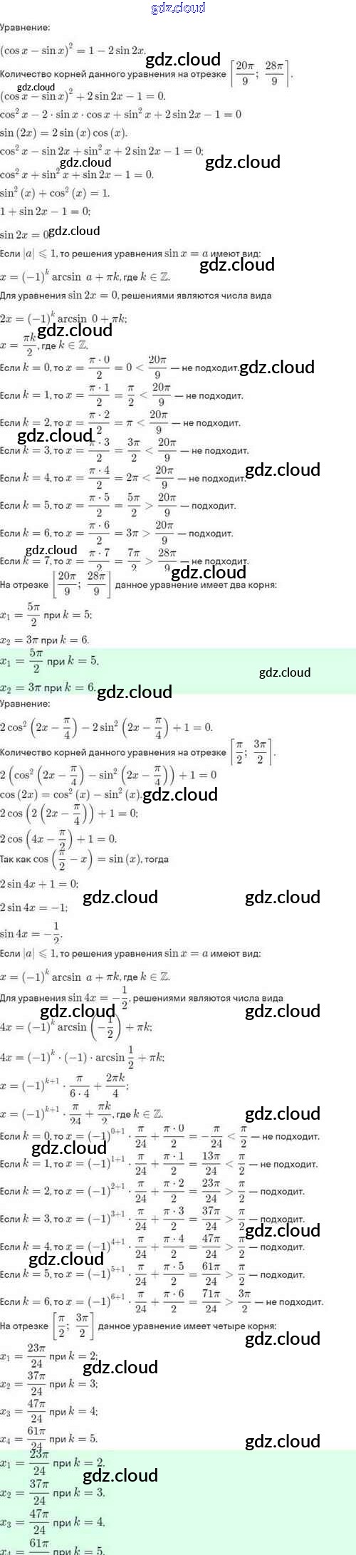 Ответы. §27. Формулы двойного аргумента. Формулы понижения степени по Алгебре 10 класс Задачник Мордкович Базовый и углубленный уровень Мнемозина