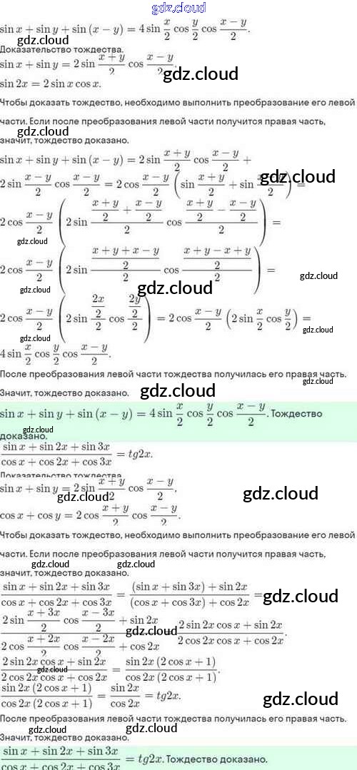 Ответы. §28. Преобразование суммы тригонометрических функций в произведение по Алгебре 10 класс Задачник Мордкович Базовый и углубленный уровень Мнемозина