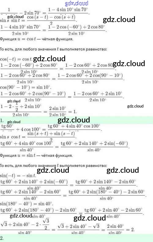 Ответы. §29. Преобразование произведения тригонометрических функций в сумму по Алгебре 10 класс Задачник Мордкович Базовый и углубленный уровень Мнемозина