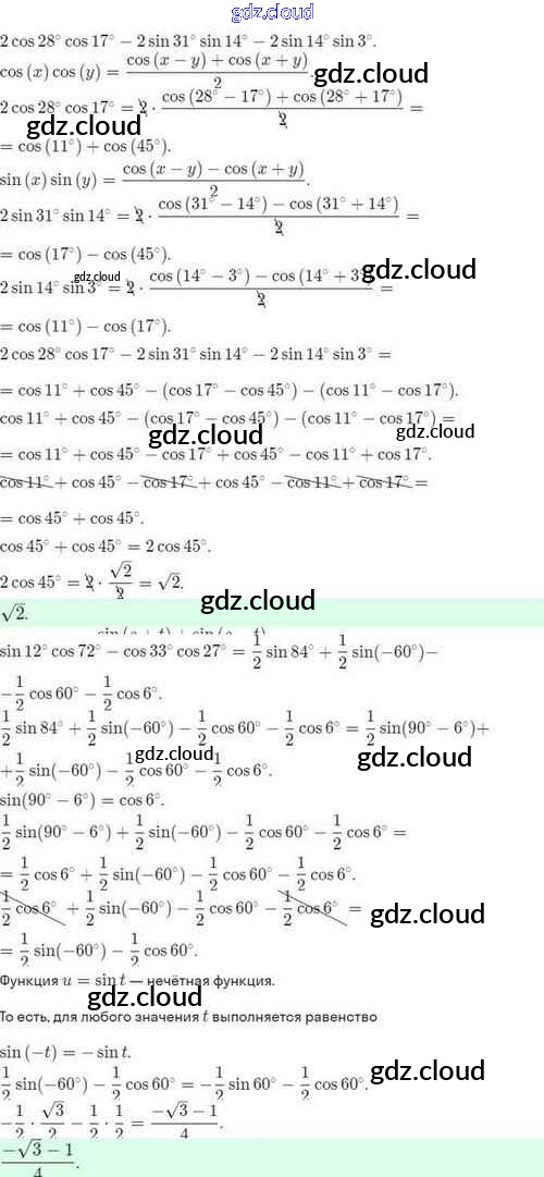 Ответы. §29. Преобразование произведения тригонометрических функций в сумму по Алгебре 10 класс Задачник Мордкович Базовый и углубленный уровень Мнемозина