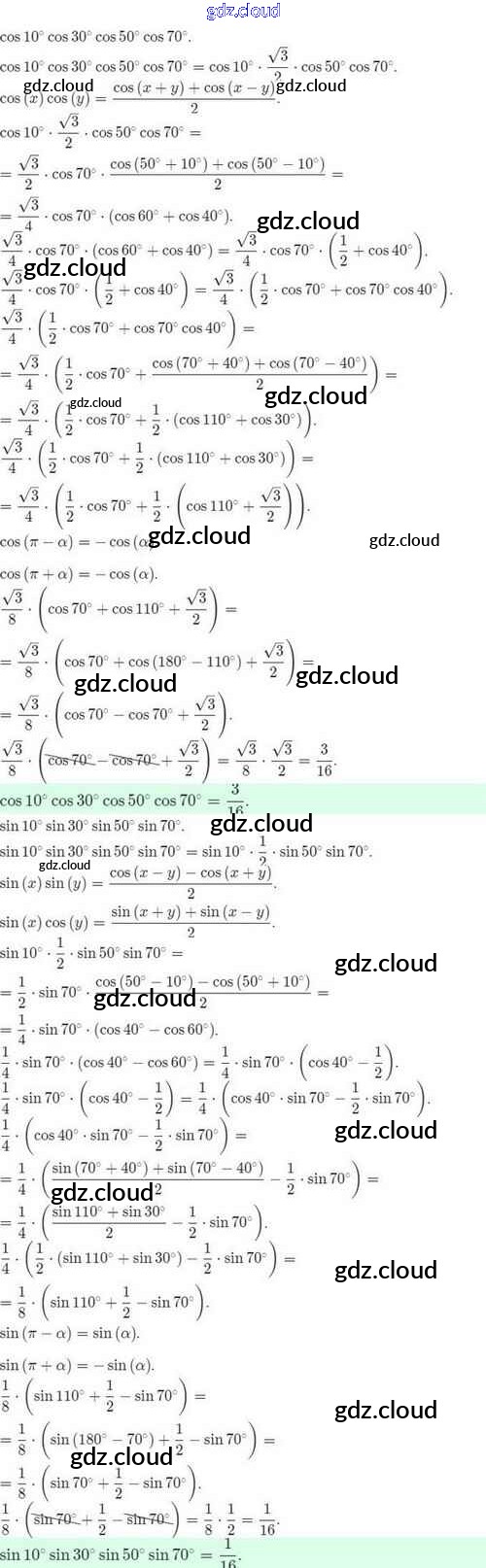 Ответы. §29. Преобразование произведения тригонометрических функций в сумму по Алгебре 10 класс Задачник Мордкович Базовый и углубленный уровень Мнемозина