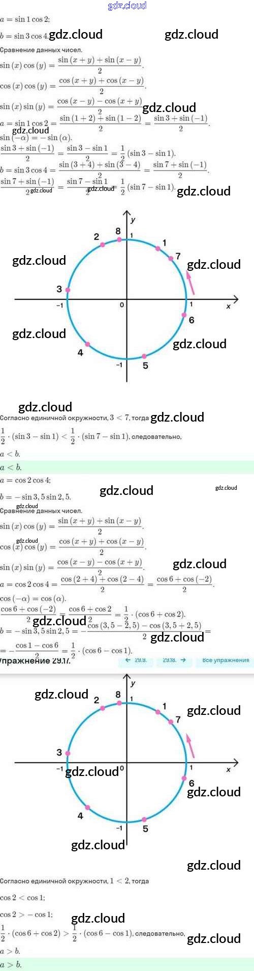Ответы. §29. Преобразование произведения тригонометрических функций в сумму по Алгебре 10 класс Задачник Мордкович Базовый и углубленный уровень Мнемозина