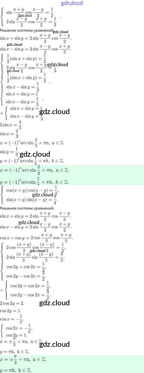 Ответы. §29. Преобразование произведения тригонометрических функций в сумму по Алгебре 10 класс Задачник Мордкович Базовый и углубленный уровень Мнемозина