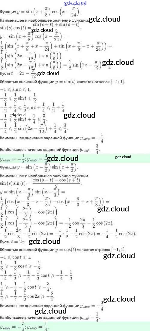 Ответы. §29. Преобразование произведения тригонометрических функций в сумму по Алгебре 10 класс Задачник Мордкович Базовый и углубленный уровень Мнемозина