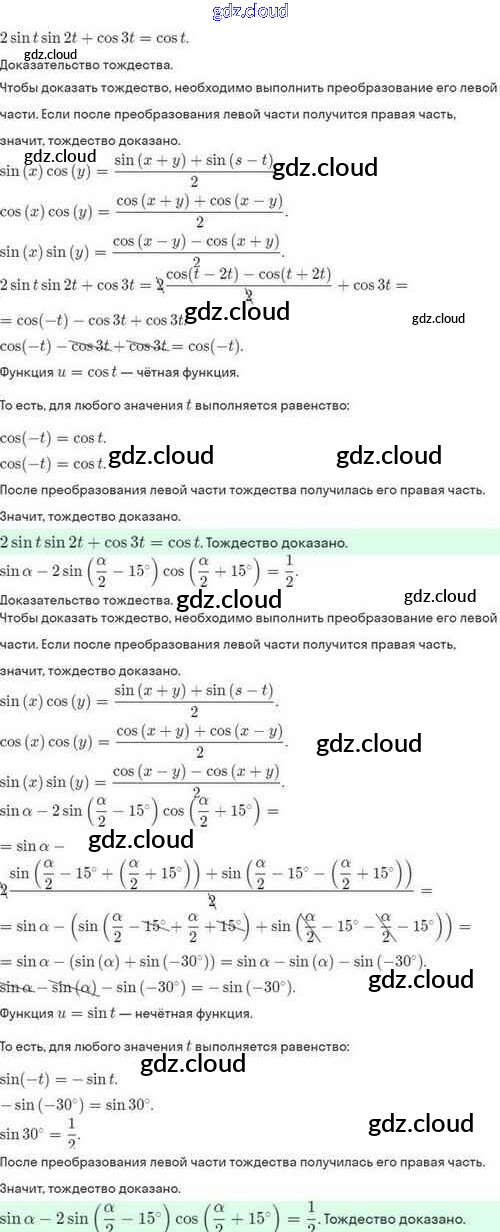 Ответы. §29. Преобразование произведения тригонометрических функций в сумму по Алгебре 10 класс Задачник Мордкович Базовый и углубленный уровень Мнемозина