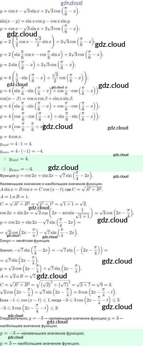Ответы. §30. Преобразование выражения Asinx+Bcosx к виду Csin(x+t) по Алгебре 10 класс Задачник Мордкович Базовый и углубленный уровень Мнемозина