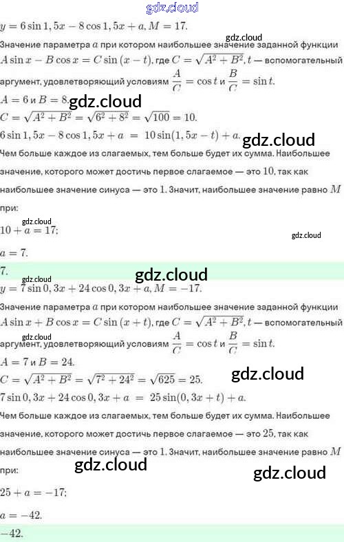 Ответы. §30. Преобразование выражения Asinx+Bcosx к виду Csin(x+t) по Алгебре 10 класс Задачник Мордкович Базовый и углубленный уровень Мнемозина