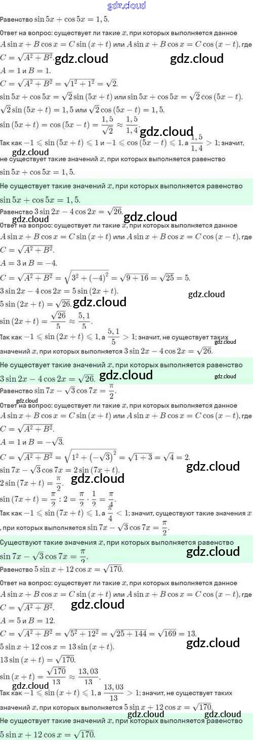 Ответы. §30. Преобразование выражения Asinx+Bcosx к виду Csin(x+t) по Алгебре 10 класс Задачник Мордкович Базовый и углубленный уровень Мнемозина